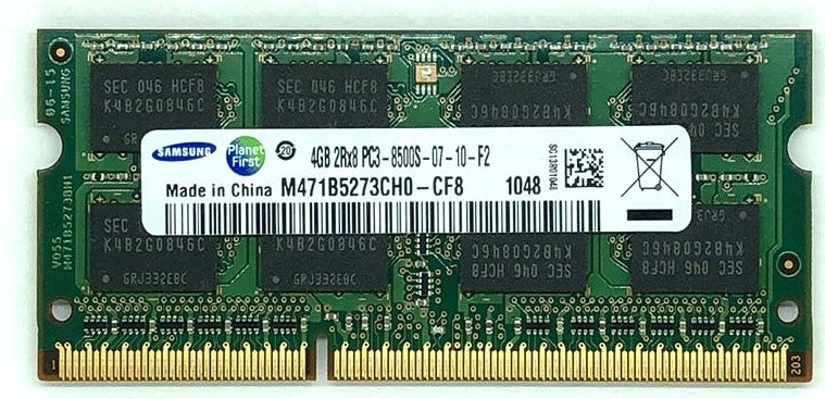 Samsung M471B5273CH0-CF8 4GB DDR3 1066MHz 2RX8 PC3-8500 non-ECC Unbuffered CL7 204-Pin SoDimm Memory Module for Laptop